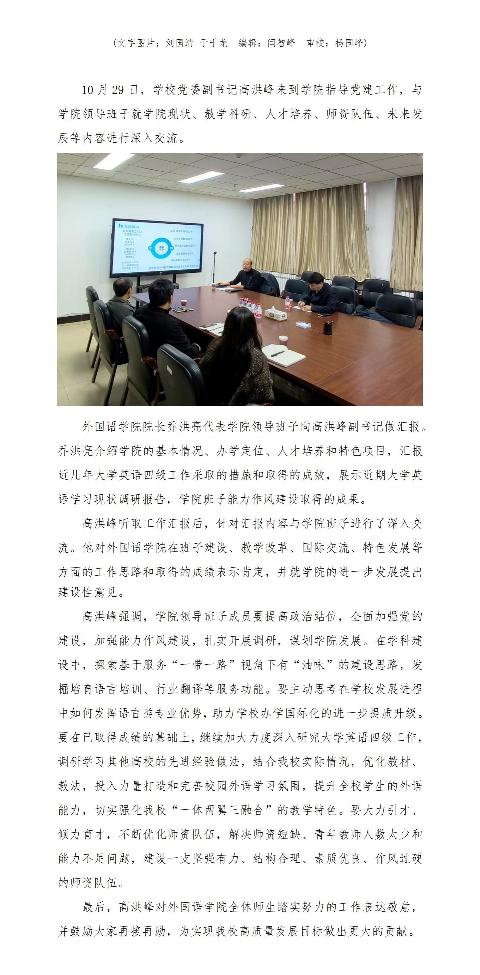 学校党委副书记高洪峰深入外国语学院开展调研指导
