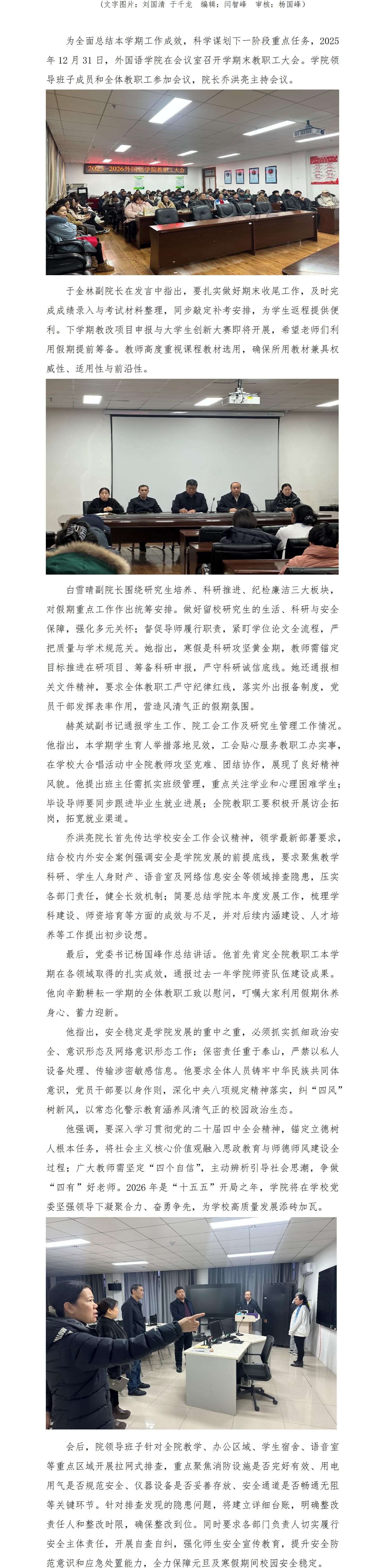 学院召开2025-2026上学期末教职工大会